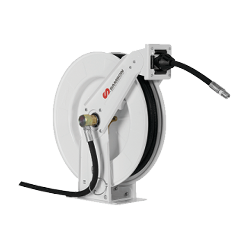 Samson hose reels are available in high, medium and low pressure applications. Different hose capacities for maximum flexibility in selecting a hose reel assembly to match specific need. Samson hose reels are designed with non-restrictive fluid passages and the right hose diameter for each application to provide the quickest material delivery.